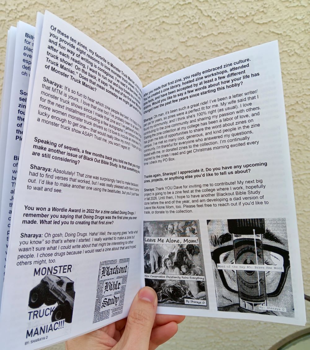 Dave sent six zine makers each a list of questions. They replied with the answers. The result is this zine, featuring interviews with Joshua James Amberson, Steven Svymbersky, Billy McCall, Dayna Moth, Sharaya O, and Ed Kemp.